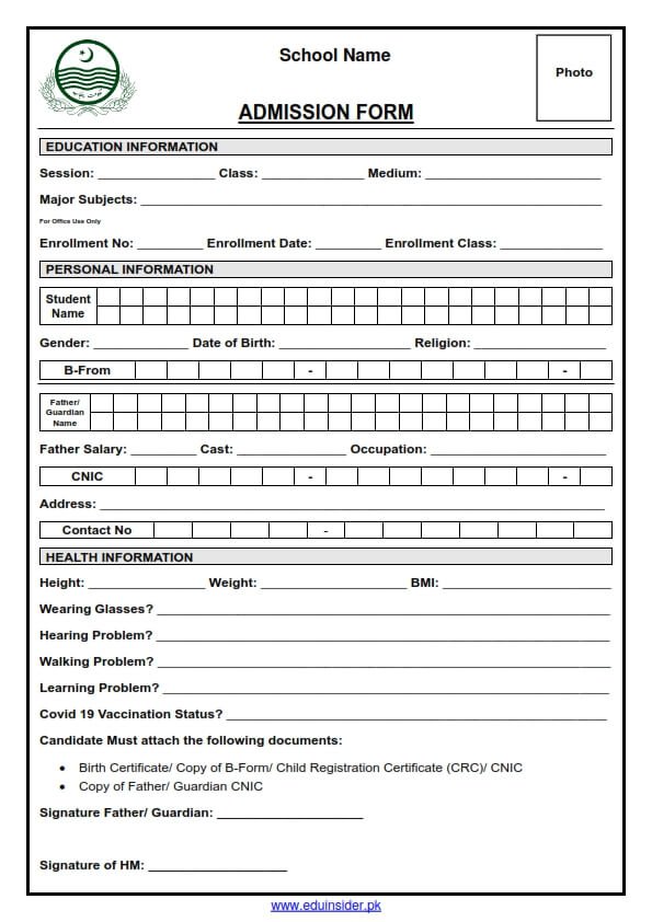 Home » Govt. of Punjab » School Education Department » General Decuments » Forms » Admission Form for Govt. Schools