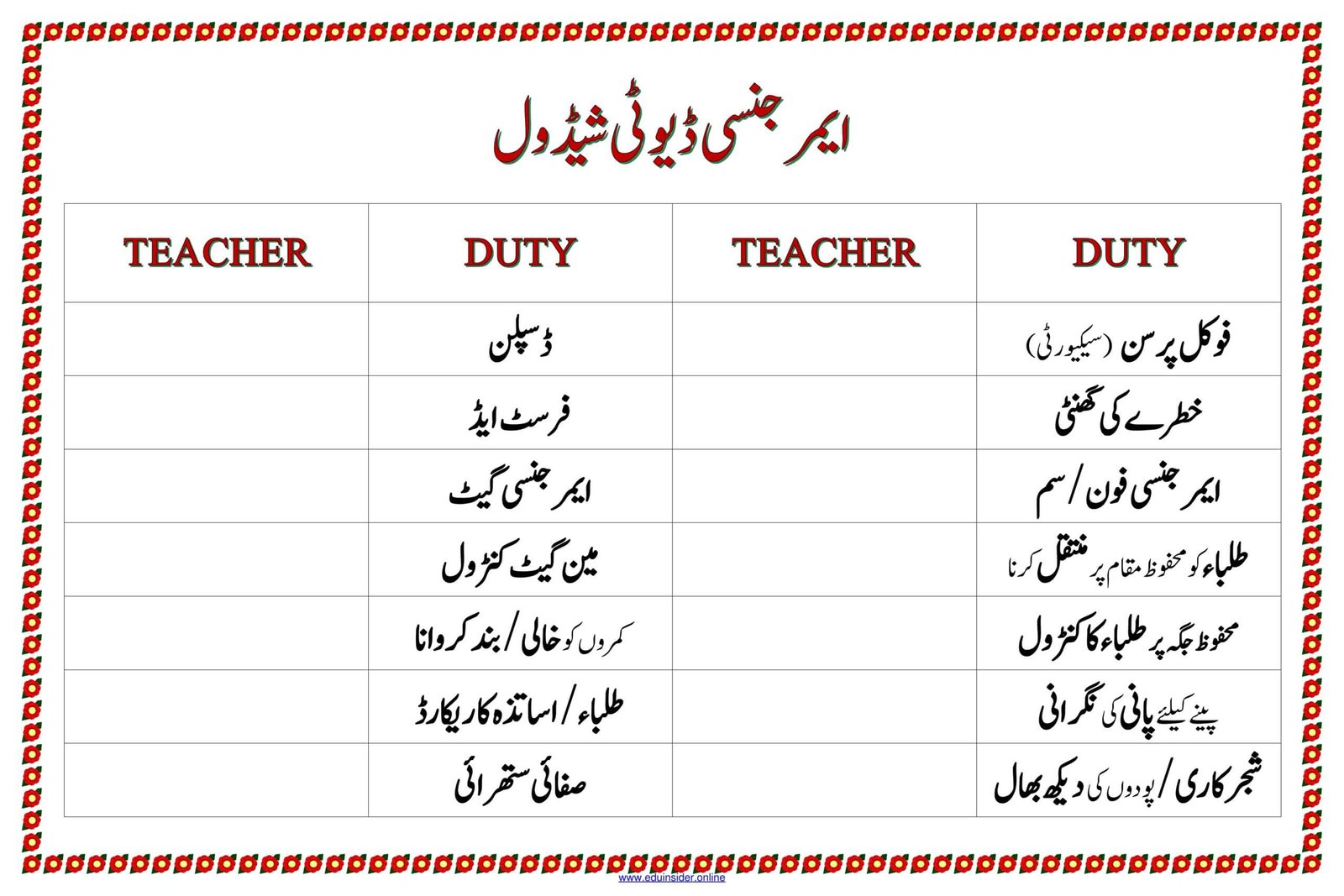 | DUTY ROSTER SAFE ENTERANCE AND EXIT | ||