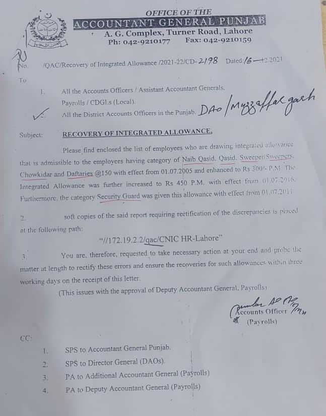 Home » PIFRA » Integrated Allowance Rates of Class-IV Employees